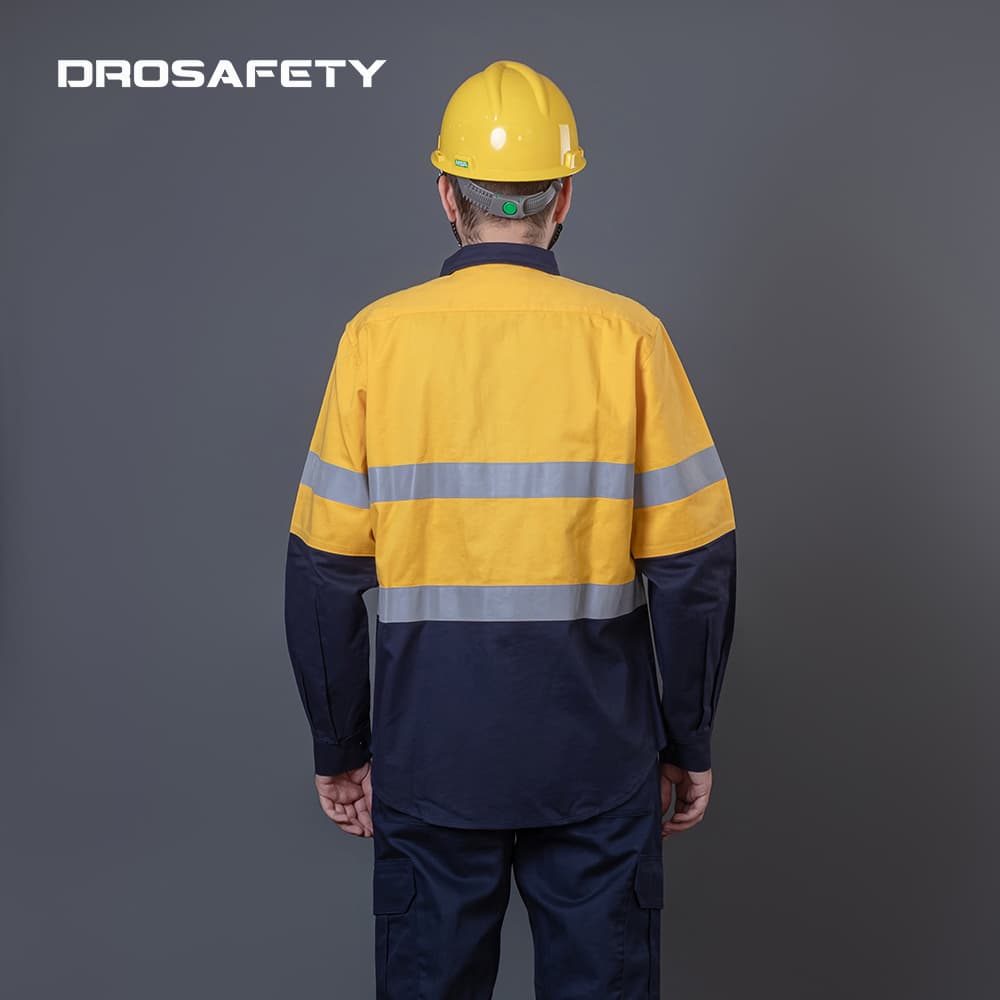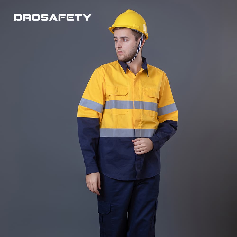 拼色設(shè)計不僅增加了襯衫的時尚感和辨識度,還可以在一定程度上幫助工人快速區(qū)分不同的作業(yè)區(qū)域或職責(zé)。