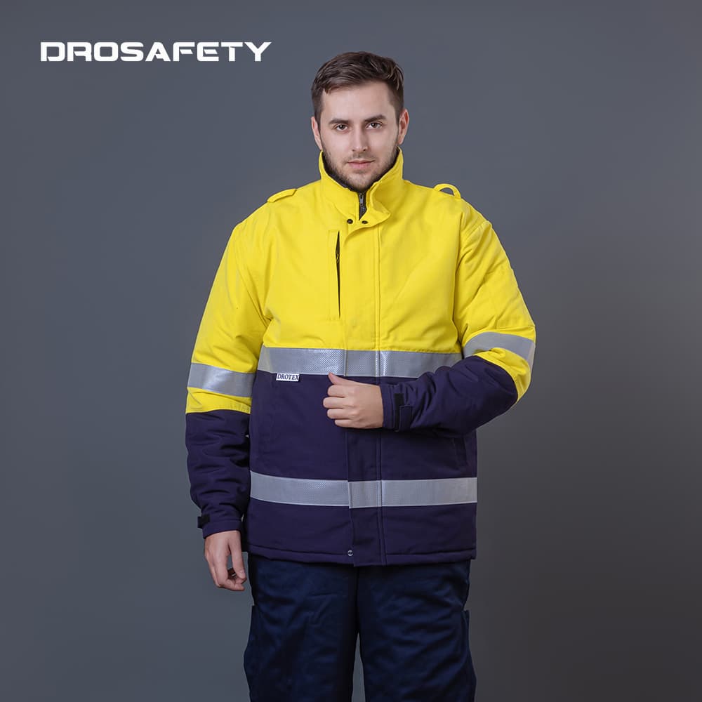 專為石油天然氣行業(yè)設(shè)計(jì)的一種高性能工作服,特別適用于寒冷冬季的工作環(huán)境。這款?yuàn)A克集合了夾棉保暖、阻燃防護(hù)和反光警示等多重功能,為工作人員提供了全方位的安全保障。
